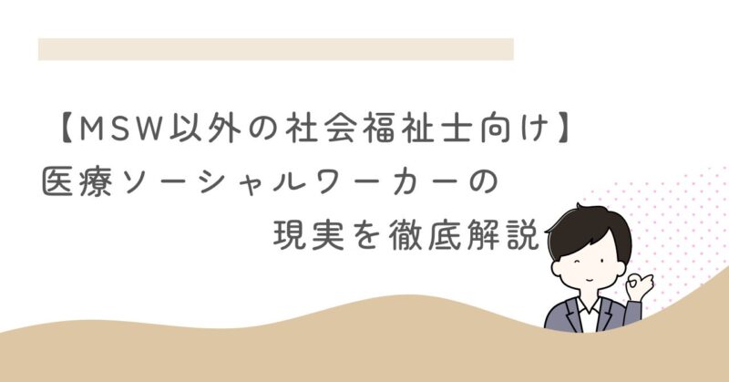 医療分野の社会福祉士である医療ソーシャルワーカー(以下MSWと略す)が、他分野の社会福祉士に向けて様々な疑問を解決します。
